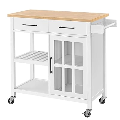 Fantastically useful islanddawnthis island is the perfect size for my small kitchen. Customize to fit your family's needs and kitchen space! The additional countertop gives you extra space to prepare meals while the cabinets underneath can provide you with necessary storage. For smaller spaces, butcher blocks & kitchen carts are really. Kitchen cart with bamboo top, rollable kitchen island with open storage shelf, with 2 drawers, towel rack 36 inches high, white.