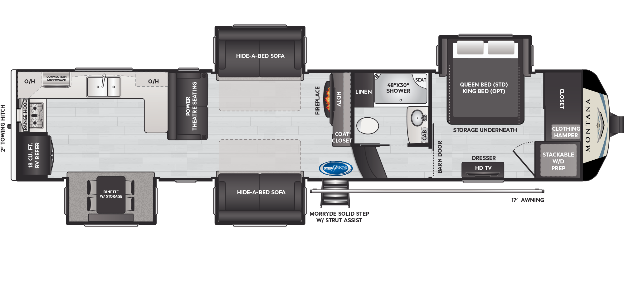Why we recommend the fifth wheel of keystone montana: This front kitchen fifth wheel comes with a big bedroom and it has other spacious sleeping areas. Here is an awsome floor plan a front kitchen 5th wheel with (6) slide outs, (6) point level up and a ton of storage and living space. That's why we're here to help you find the best fifth wheels with front kitchen if this is more. Are you looking for an rv that has a unique and space efficient floor plan?